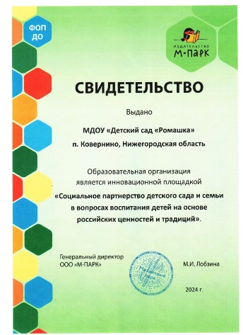 сетевой инновационной площадки Федерального уровня ООО «Мозаичный парк» по теме: